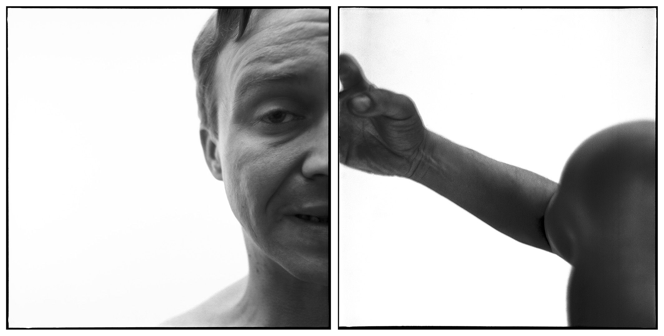 An der Werkgruppe der “Körperstücke”habe ich von Januar 1984 an gearbeitet. Diese Arbeit hatte sich im Laufe des Jahres 1983 bei der Suche nach bildnerischen Möglichkeiten mit dem Bildnis von anderen Personen entwickelt und war eine Antwort auf die Frage nach höherer Authentizität in diesen Werken. Sollte ein Darsteller diese Rolle verkörpern oder ich selbst als der Protagonist in meinen Arbeiten erscheinen? Ich entschied mich für Letzteres und die Arbeit mit dem “Selbstbild” als die authentischere Möglichkeit. Die in diesem Zeitraum entstandenen Werke waren eine Form von Performance für das Auge der Kamera. Mit dem entstandenen Bildmaterial arbeitete ich anschliessend an ein- und mehrteiligen Kompositionen. Portraits von Freunden und Künstlerkollegen habe ich von diesem Zeitpunkt an parallel zu diesen Arbeiten weitergeführt.
